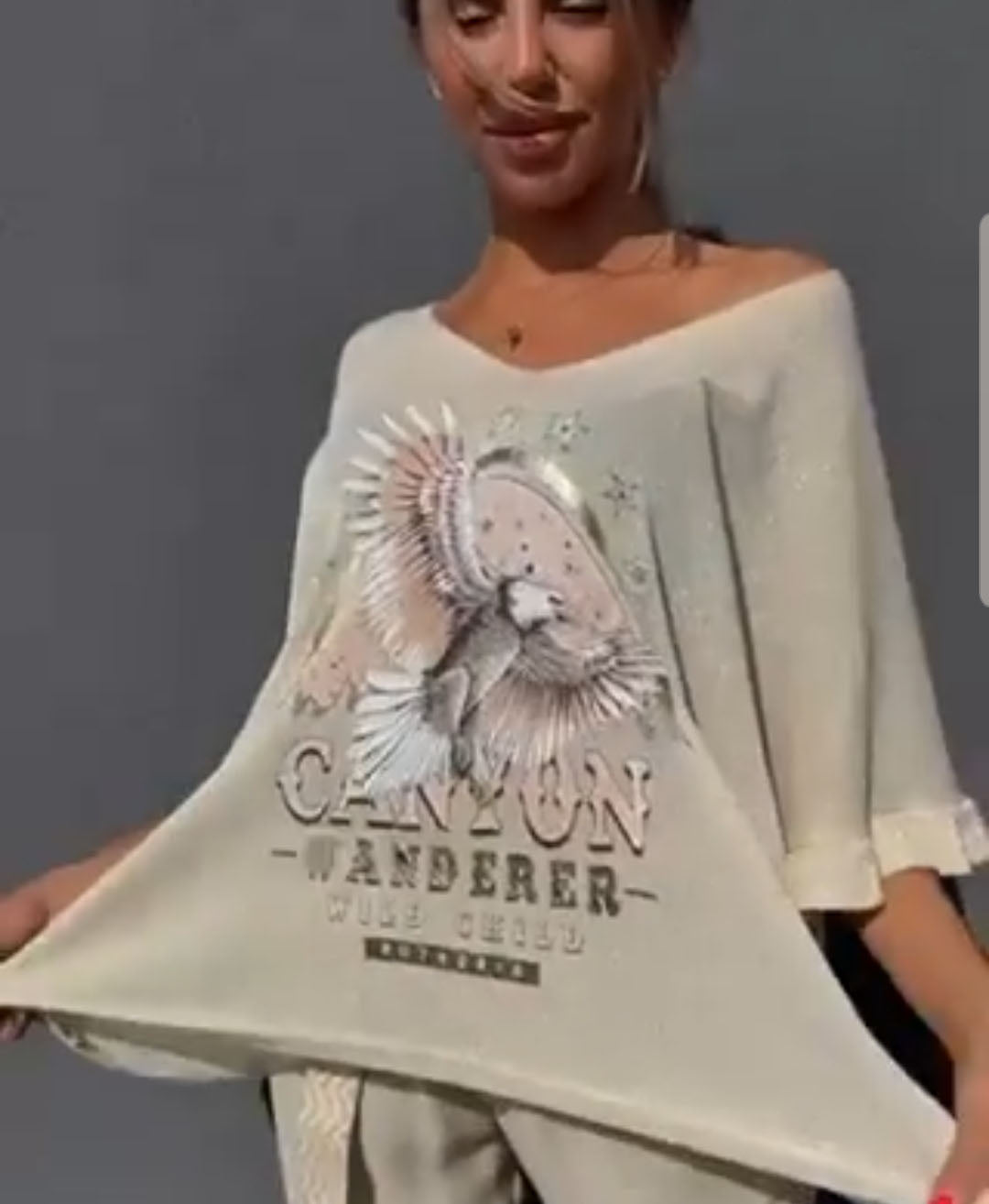 Beige Gold Oversize Short Sleeve Canyon Jumper