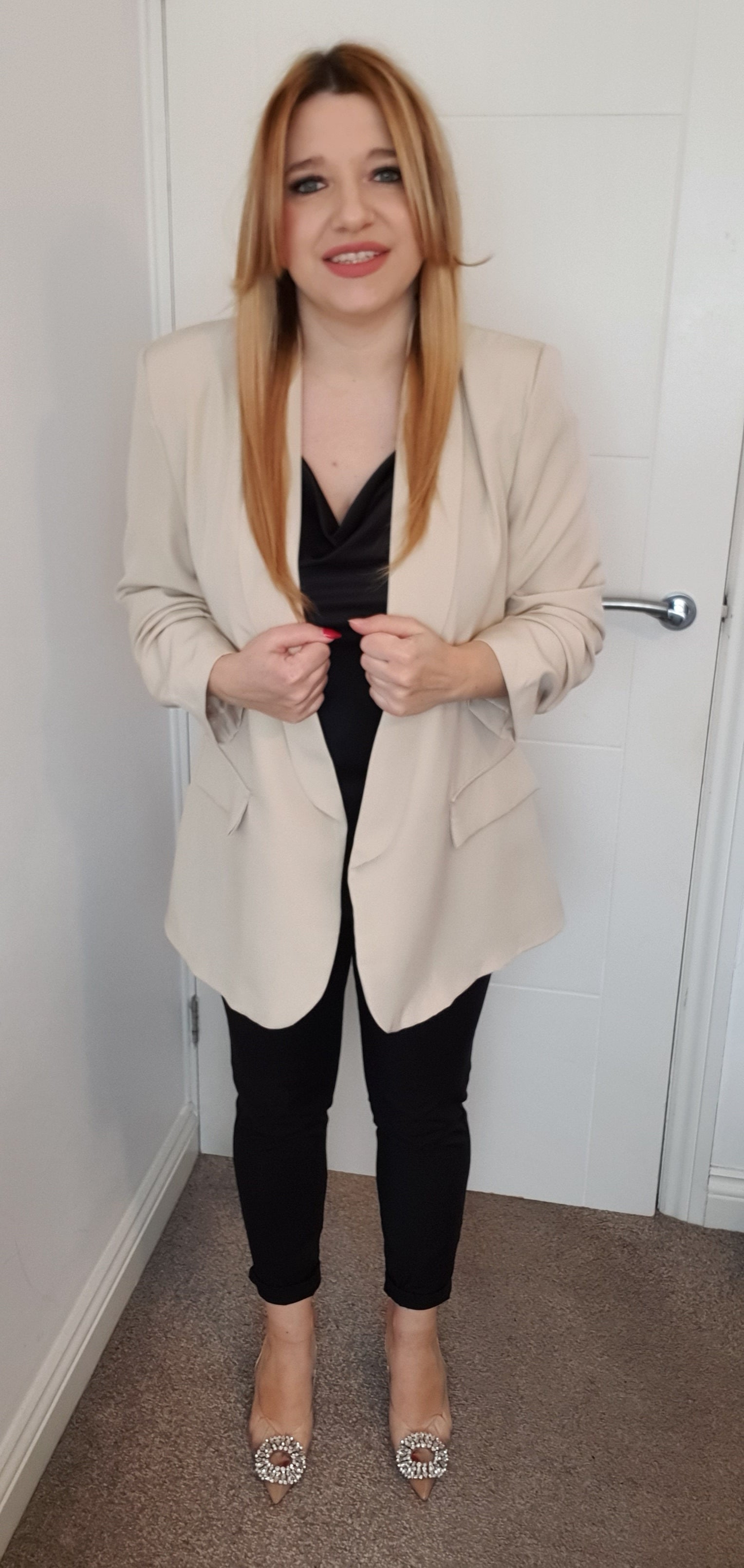 Beige Ruched Sleeve Blazer One Size 8-14 UK