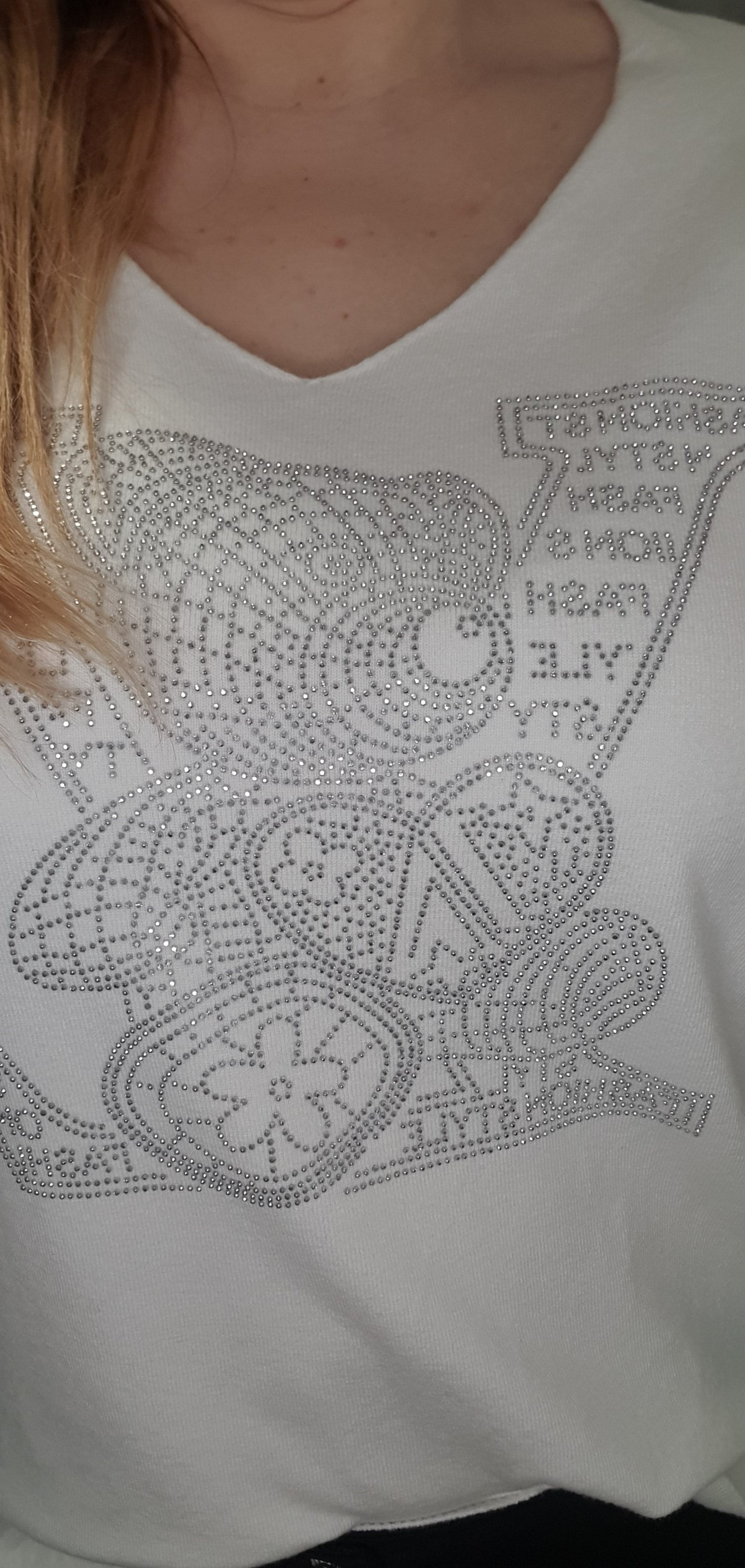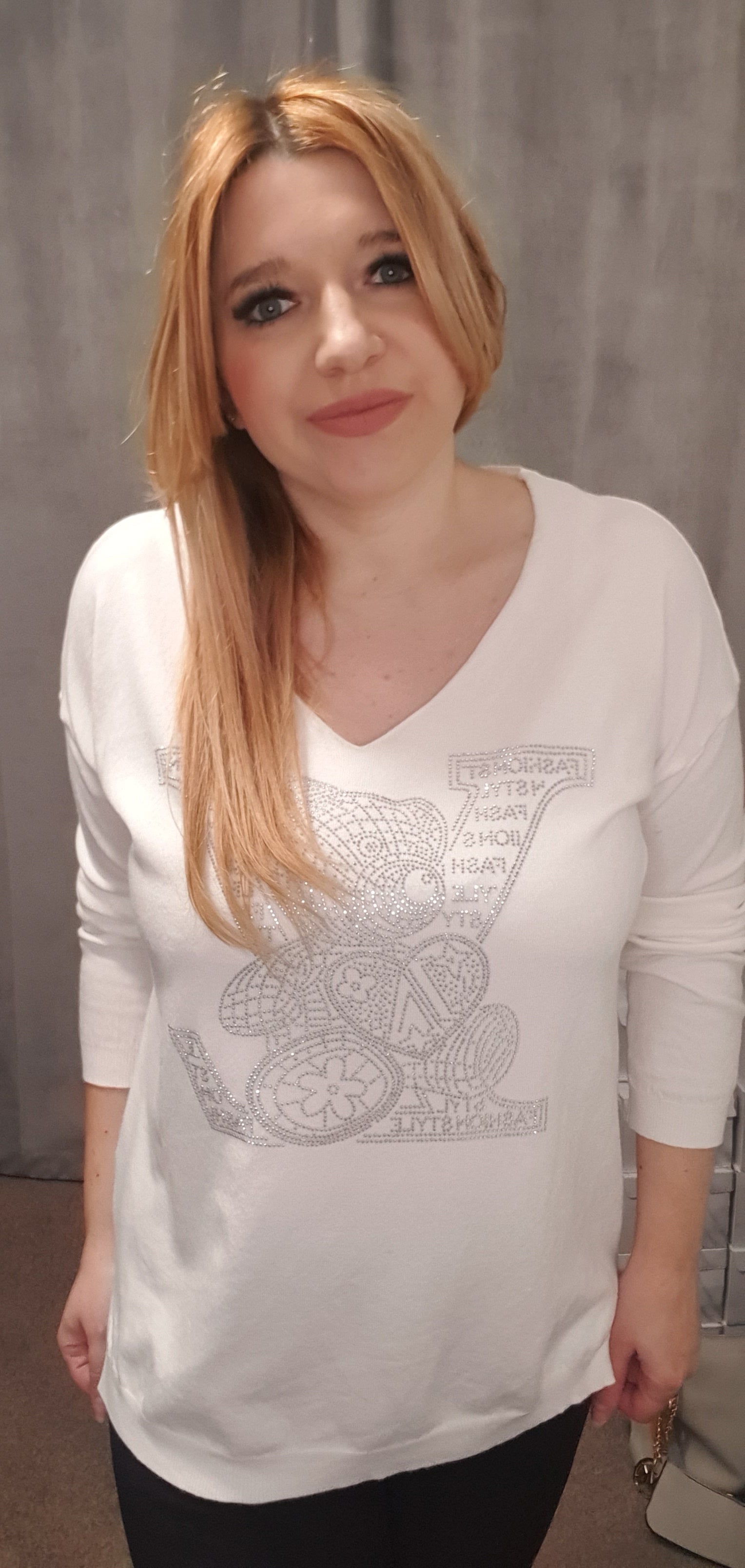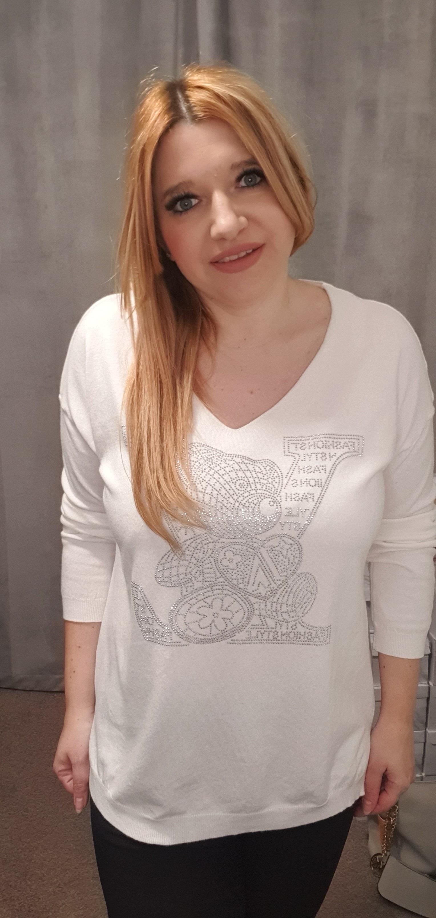 Beautiful, very soft, great quality off-white jumper with a beautiful Swarovski beads LV teddy application.