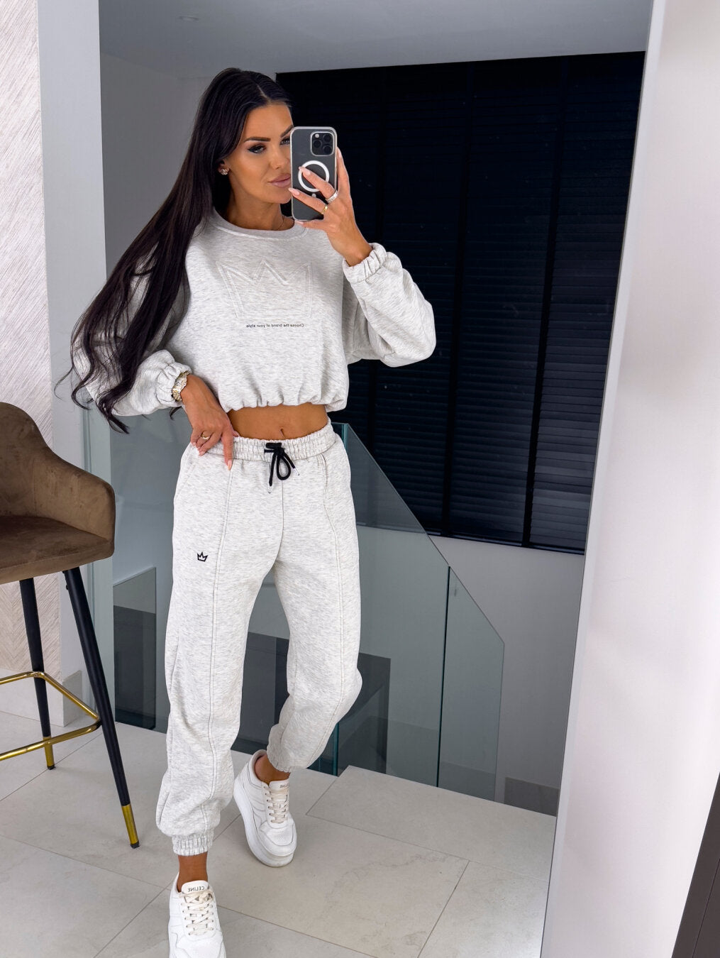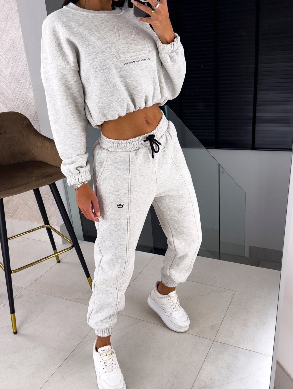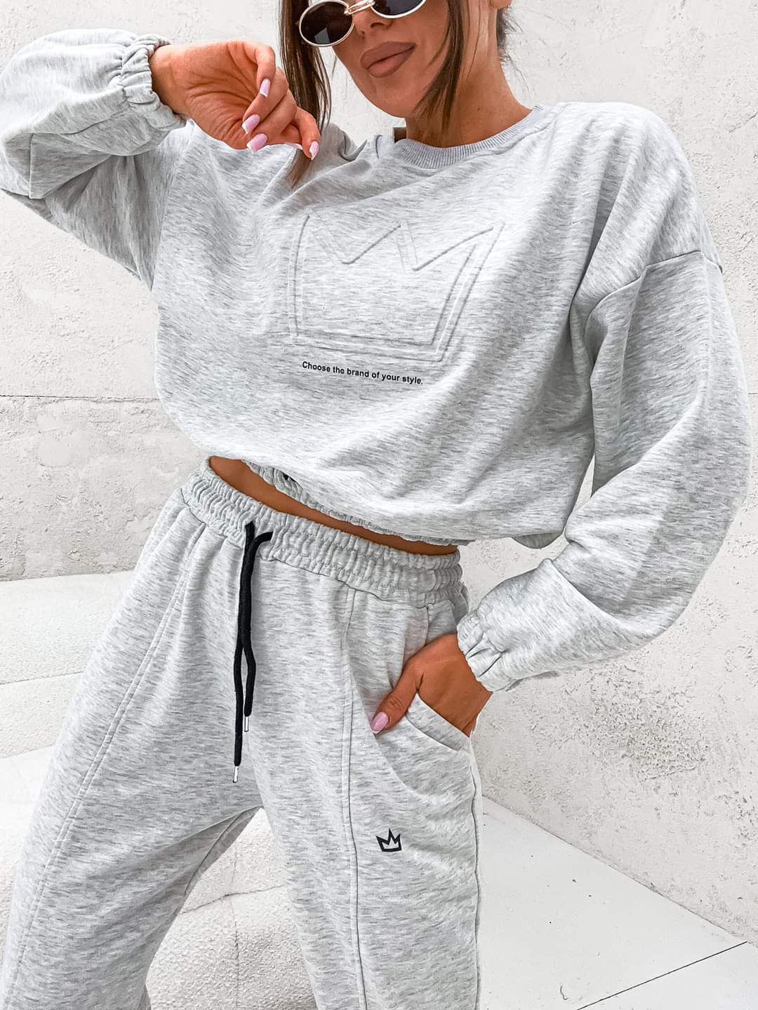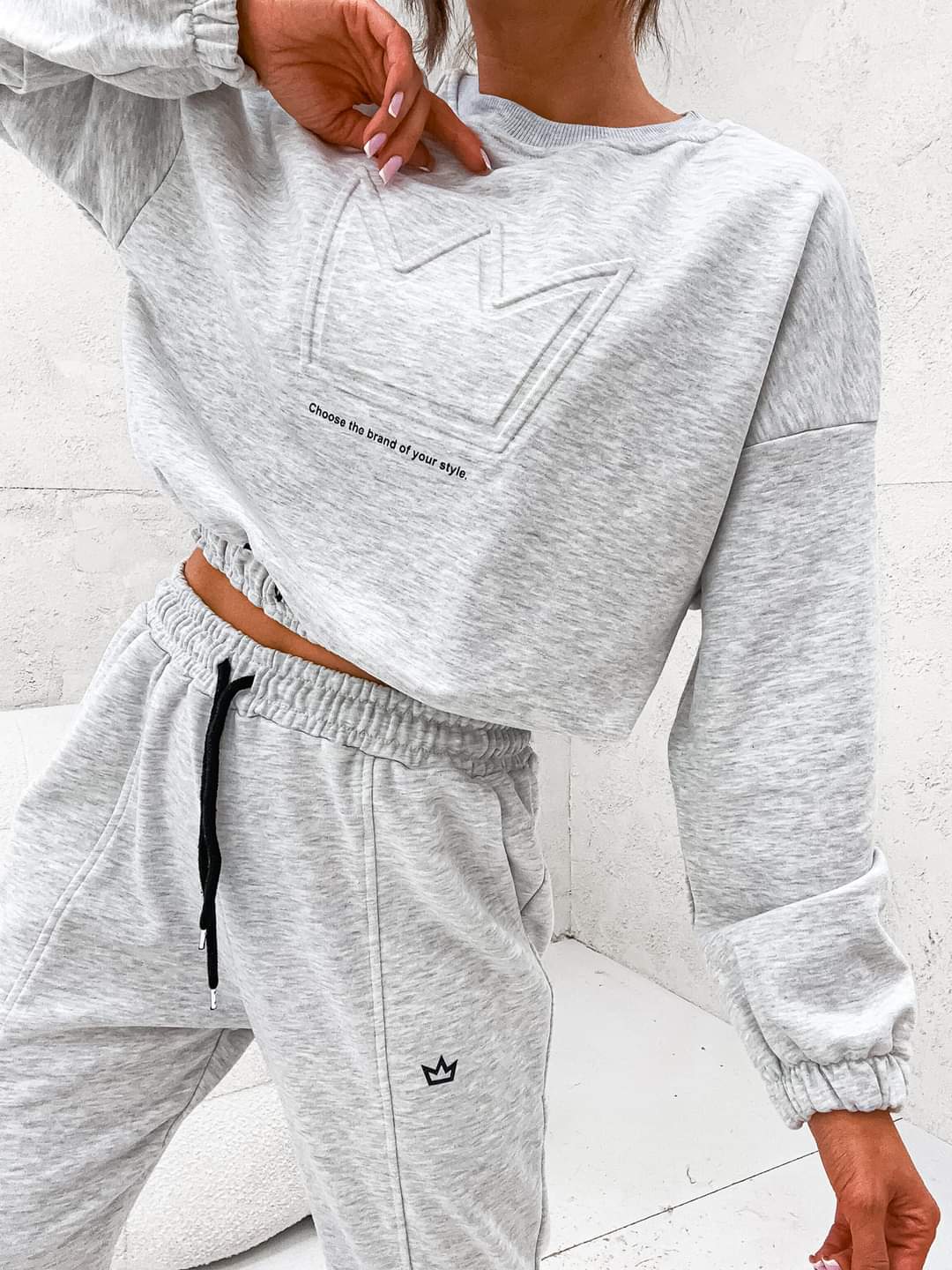 Introducing our two piece CROWN tracksuit, crafted with top-notch quality. Featuring long trousers with pockets, and cosy sweatshirt, this ensemble forms a stunning outfit essential for your wardrobe. Sweatshirt has an elastic band in waist and embossed crown logo with slogan "Choose the brand of your style".