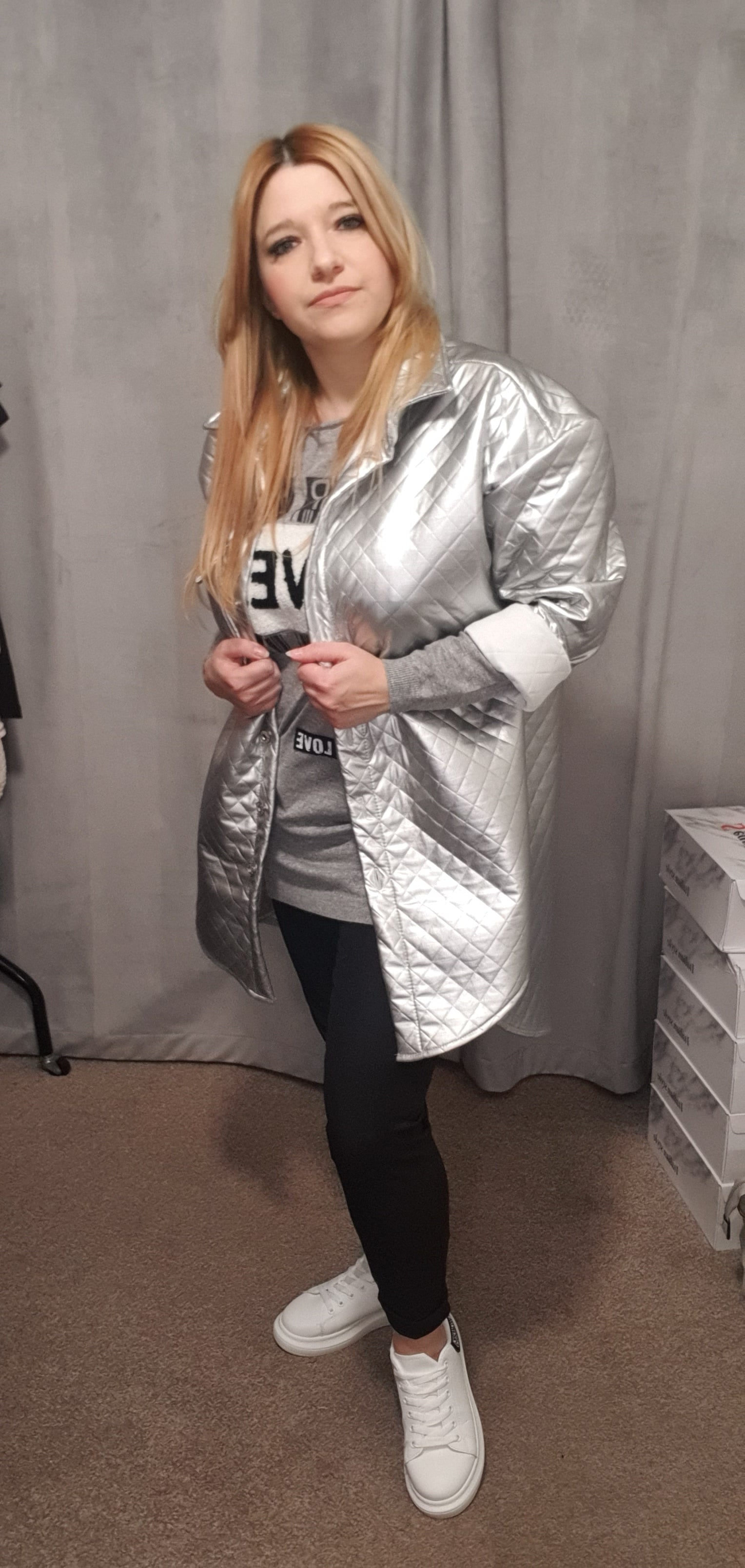 Perfect spring outfit. Georges silver, overshirt, jacket with a longer back.