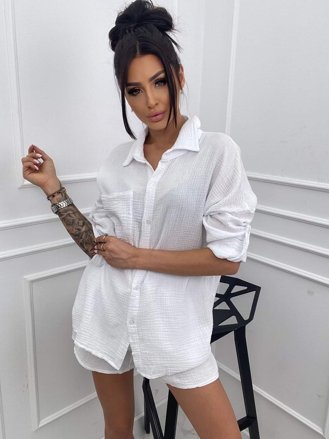 White Muslin Two Piece Set Shirt And Shorts One Size