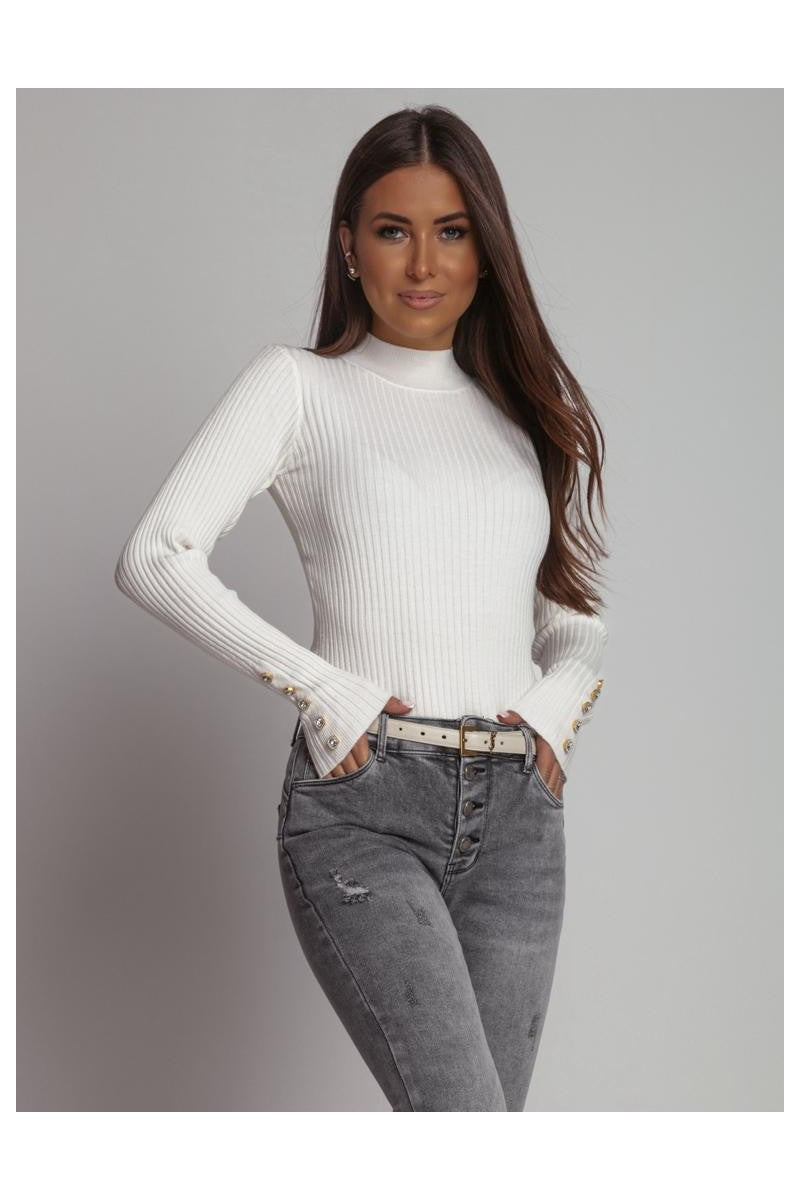 Beautiful white polo neck ribbed jumper with crystal buttons. Nice soft, stretchy and thick fabric. Perfect for everyday.